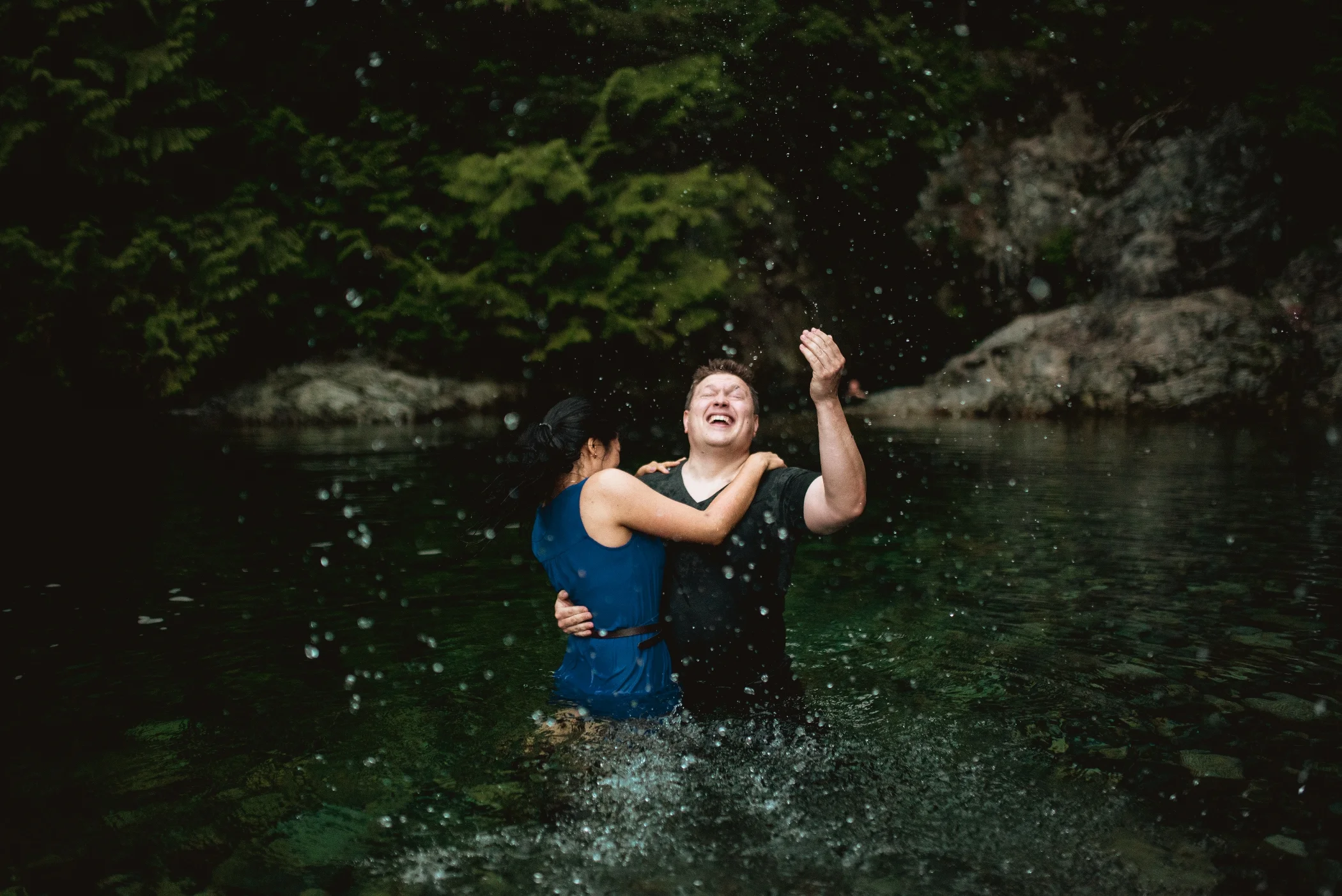 When Sophie told me they are both "super goofy and a little immature", I knew we had to do something that would reflect that aspect of their relationship. I suggested that after they take some nice formal photos, we all jump into the water together and splash around to grab some AMAZING candids (Yes i was butt deep in the water with a SARAN-wrapped camera telling them to splash water towards me, while Taylor was standing in the water a few feet away grabbing a different angle. Some may call us a little crazy) . I almost feel that I had more fun with this than they did!